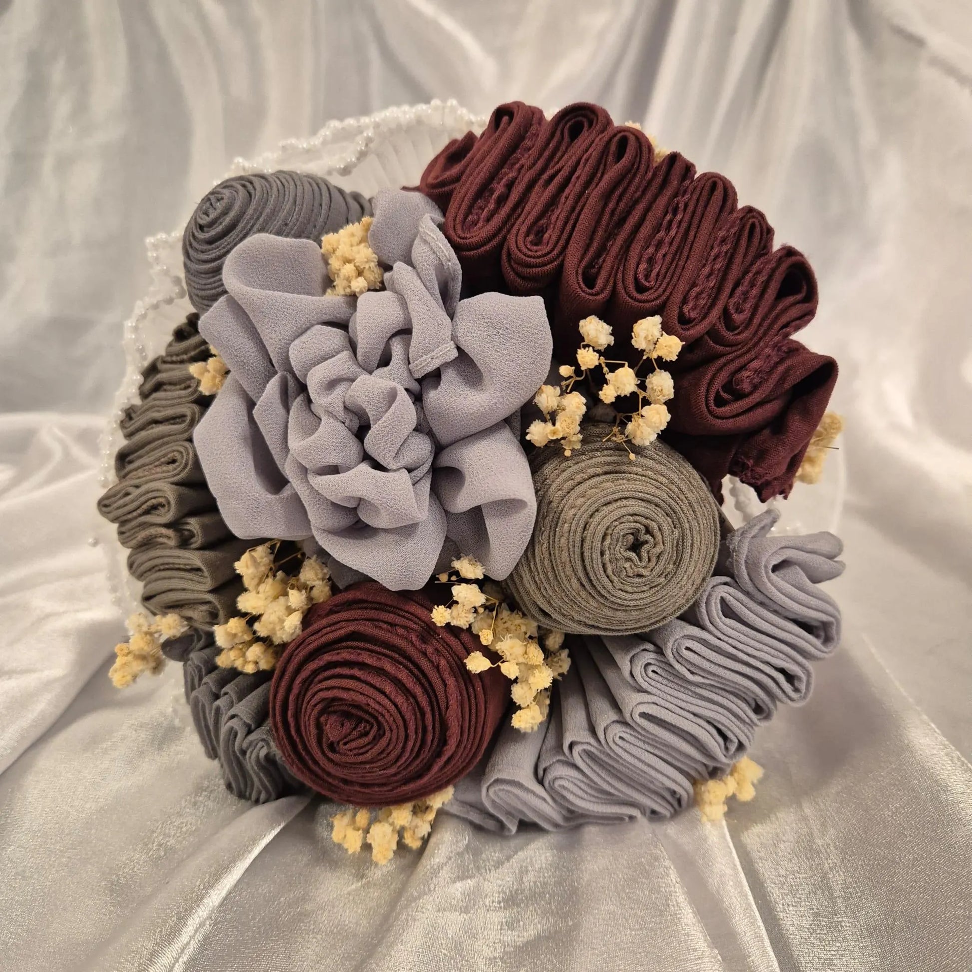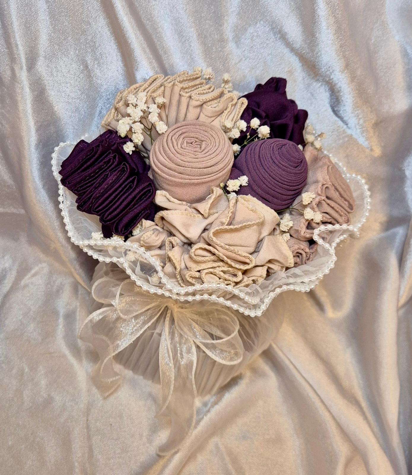A beautiful and practical gift, this Hijab Bouquet is designed with both style and function in mind. Each bouquet includes four high-quality hijabs carefully arranged with fresh flowers, making it a thoughtful choice for any occasion.